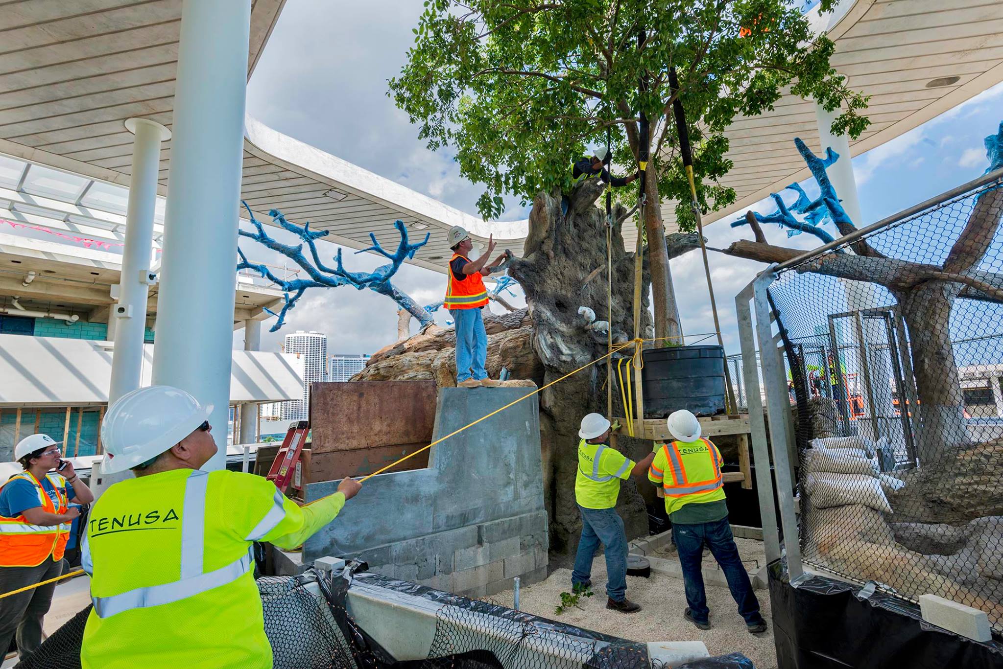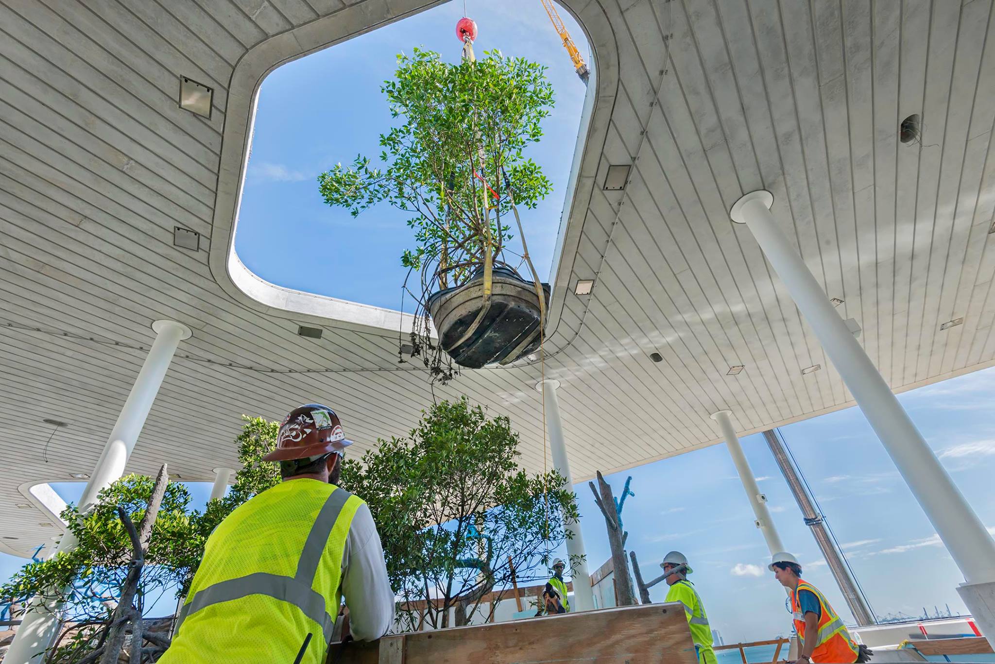 On December 6th, the first living organisms were ready to make their new home in our museum. Five red mangroves (Rhizophora mangle, as they like to be formally introduced), ranging from 14 to 19 feet and weighing an average of 2,500 pounds, were installed by a hundred-foot crane in our Mangrove Habitat. After much preparation with Skanska USA, Maxim Crane Company, and Tenusa, our biggest trees were ready to fly up to our Vista level.