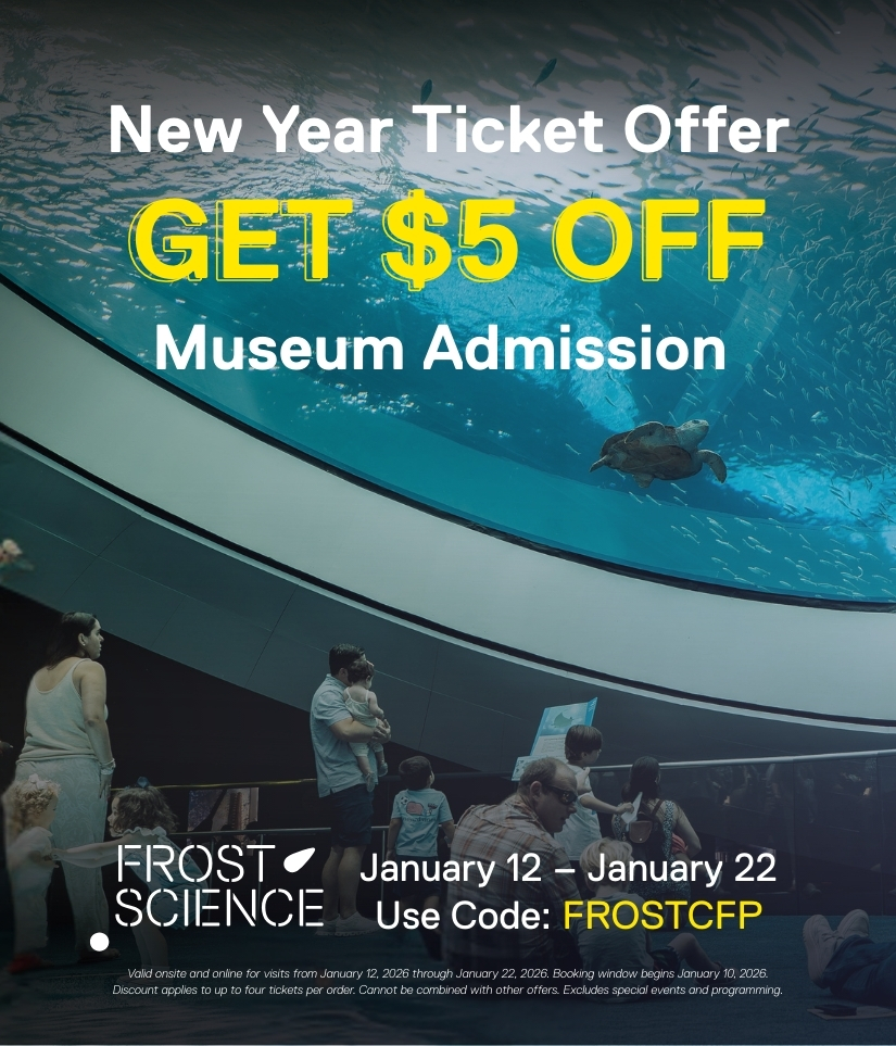 Celebrate Miami hosting the College Football Playoff National Championship with discounted tickets to Frost Science! Use promo code FROSTCFP to receive $5 off museum admission tickets for visits from January 12 through January 22, 2026. Offer available online or onsite. Must show this promotion offer at the onsite Ticket Center to receive the discount in person.